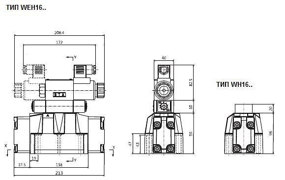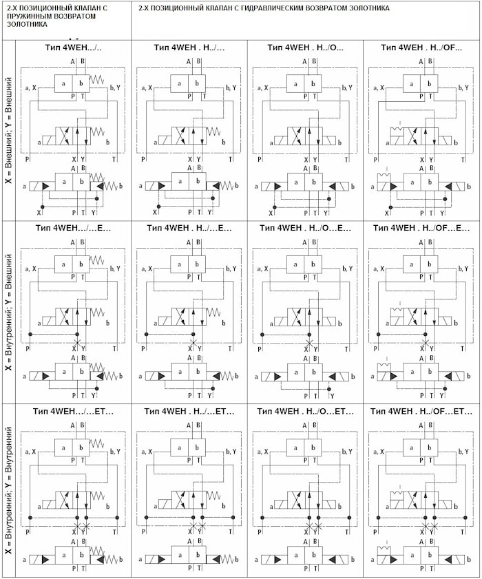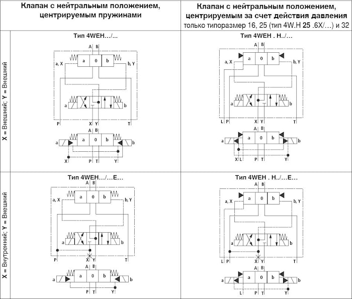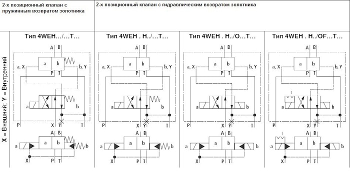 1. тип 4WEH16…--подвод масла снаружи по каналу Х, отвод масла осуществляется по каналу Y в гидробак;