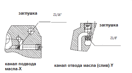 Подвод масла в систему управления также может осуществляться внутри (по каналу Р) или снаружи (по каналу (X).