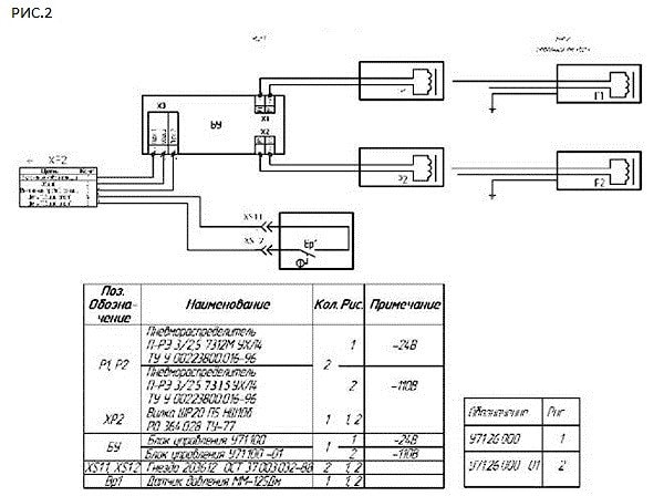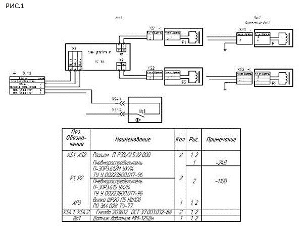 Р1, Р2--распределитель типа П-ЭПР3.612М (24в) в количестве 2 штук;
