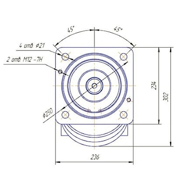 Габаритные и присоединительные размеры насос-мотора МГ250/16: