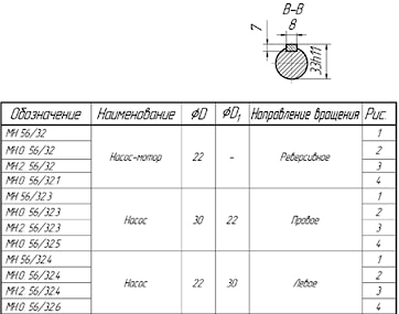 - МН 0.56/32.6 — насос (левое направление вращение, вал шпонка 8x7x50 мм)