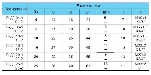 | П-ДГ04 | П-ДГ06 | П-ДГ10 | П-ДГ16 | П-ДГ20 | П-ДГ25 | |