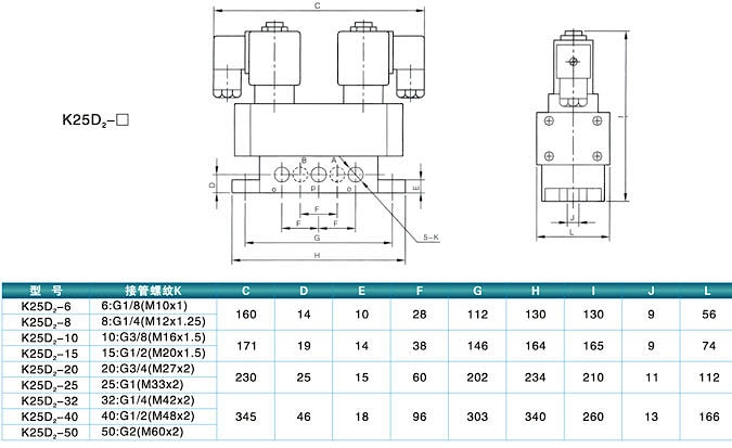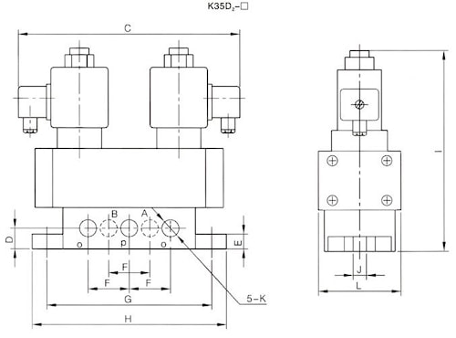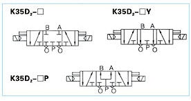Пневмораспределители пятилинейные двух и трёхпозиционные типа К25D и K35D с резьбовым присоединением пневмолиний отличаются улучшенной конструкцией, большой пропускной способностью, надёжностью и возможностью эксплуатации в более сложных условиях. Данный тип пневмораспределителей имеет одно- и двухстороннее электропневмоуправление с возможностью ручного дублирования. Пневмораспределители 5/2 и 5/3 типа K25D и K35D выгодно использовать для управления пневмоцилиндрами из-за более широких функциональных возможностей.Пневмораспределители К25D и K25D2 могут быть использованы в качестве замены распределителей, имеющих пружинный возврат и Ду=10мм, Ду=16мм, таких как: В64-13А-03, В64-23А-03, а также В64-14А-03, В64-24А-03. Кроме того, данный тип пневмораспределителей взаимозаменяем с пневмораспределителями типа RFS 52/2-..