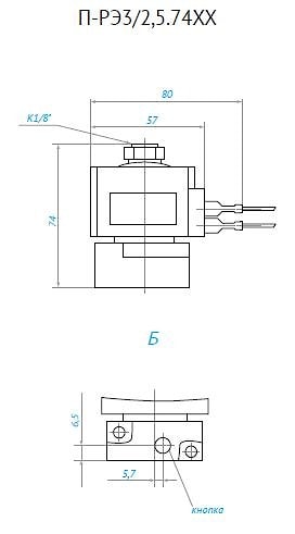 Габаритные и присоединительные размеры пневмораспределителя П-РЭ3/2,5-7412: