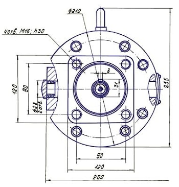 Габаритные и присоединительные размеры насос-моторов типа МНАФ 63/22: