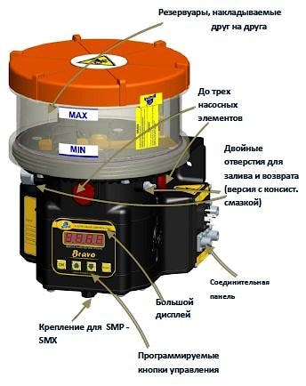 Несмотря на небольшие размеры, насосная станция BRAVO обладает высокой производительностью, что делает возможным её применение на различном оборудовании, работающем как в закрытых помещениях, так и на мобильных установках и транспорте. Инновационная система управления VARIO-DRIVE позволяет регулировать производительность и обеспечивает защиту двигателя насоса станции, что в свою очередь повышает срок службы привода насоса и максимально адаптирует систему смазки. Поэтому применение насосов BRAVO является самым оптимальным решением для многих типов смазки различной тракторной, тяжёлой и сельхозтехники.