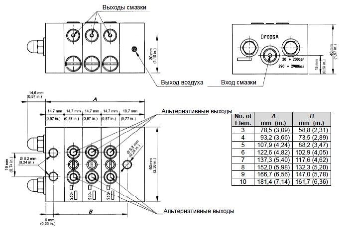 Габаритные размеры прогрессивного распределителя SXO