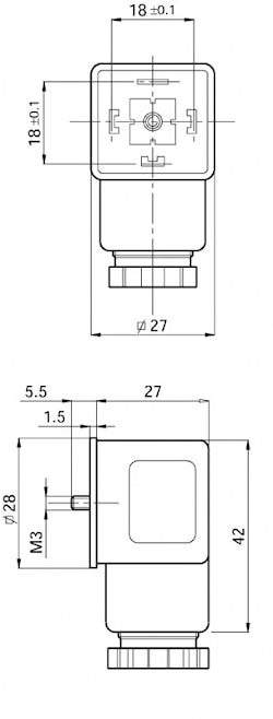 Габаритные размеры соединителей EN 175301-803 (DIN 43650A)