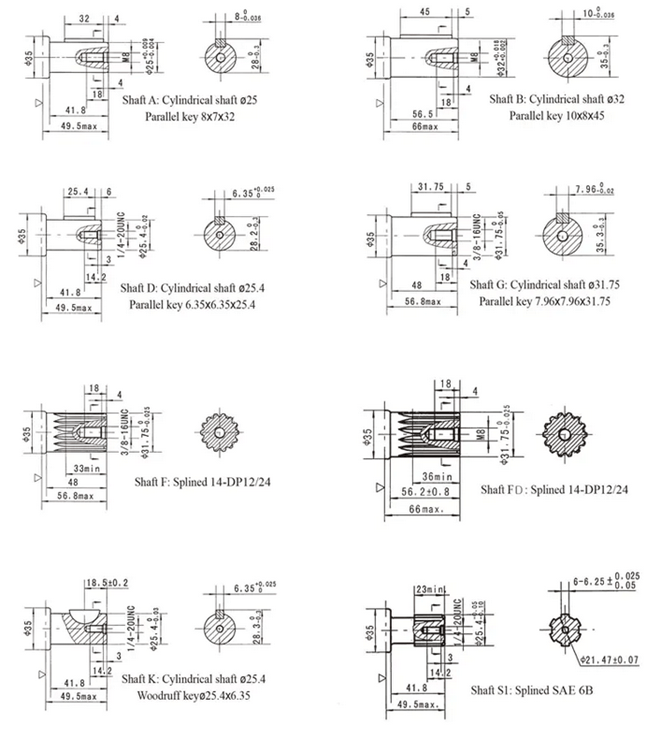 Варианты исполнения валов для гидромоторов серии BMSY: