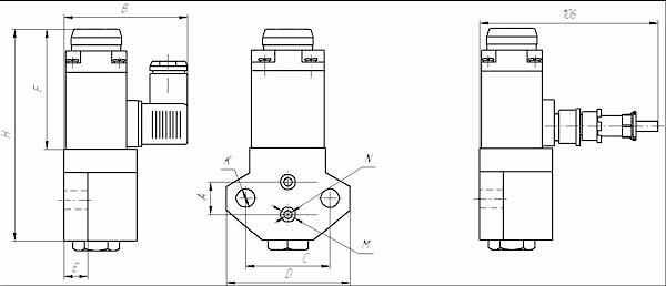 Габаритные и присоединительные размеры электропневмовентилей с соединителем 2РМГ12 угловым и с соединителем ШР16