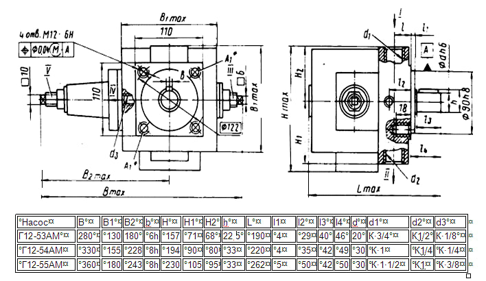 Присоединительные размеры насосов типа Г12-5..М