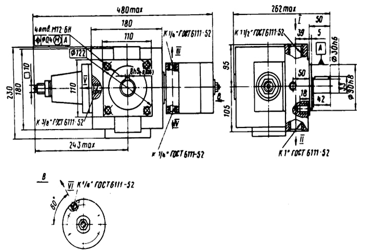 Направление вращения–правое (см. по часовой стрелке со стороны вала).