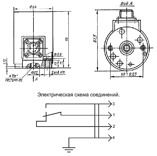 Габаритные и присоединительные размеры реле давления типа РД-23