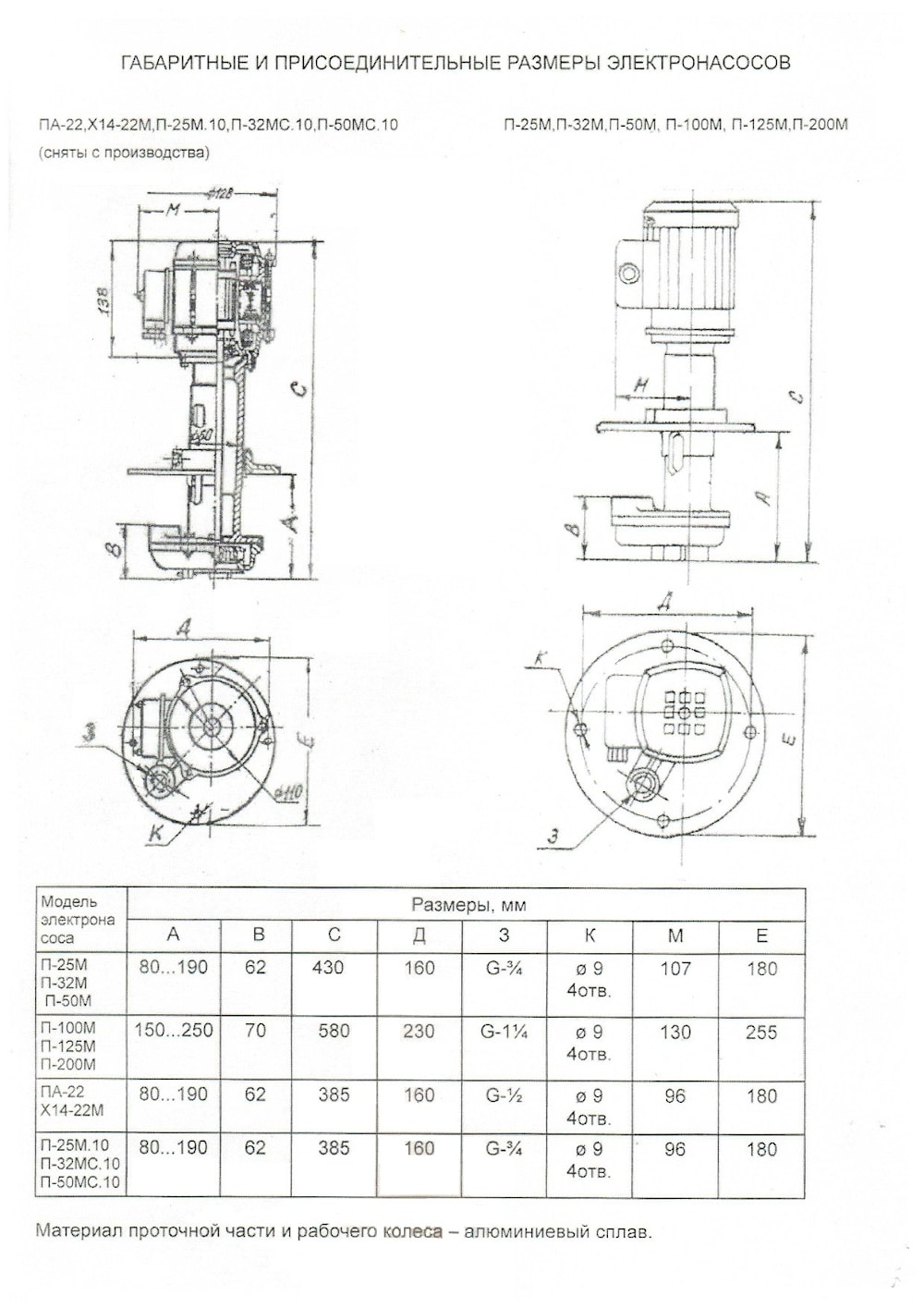 Технические характеристики электронасосов (помп) типа П-25М---П-200 производства "Скопинского завода электронасосов":