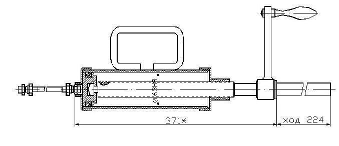 Габаритные размеры шприца типа ШРГ-630М (с рукояткой кривошипной).