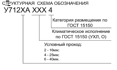 Пример условного обозначения: пневмораспределитель У71-24А 24в УХЛ4.