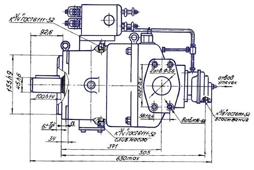 Насосы имеют два габарита 4 и 6 и различные виды механизма регулирования подачи: