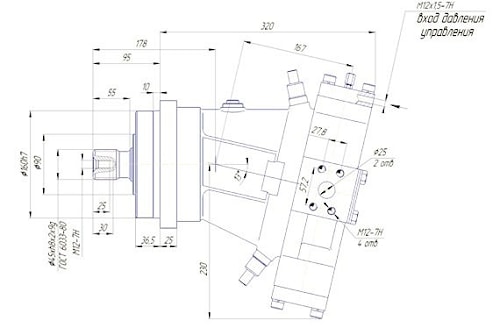 Габаритные и присоединительные размеры насос-мотора МГ1Д 112/32 :