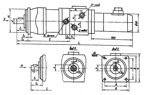 Гидроусилитель состоит из аксиально-поршневого гидромотора, управляющего устройства и шагового электродвигателя ШД-5Д1М-У3. Узел управления состоит из корпуса, крепящегося к опорному диску гидромотора. В корпусе размещены золотник, гильза и резьбовая втулка.
