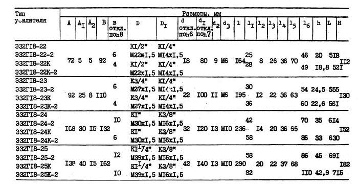 Технические характеристики гидроусилителей типа Э32Г18-2..