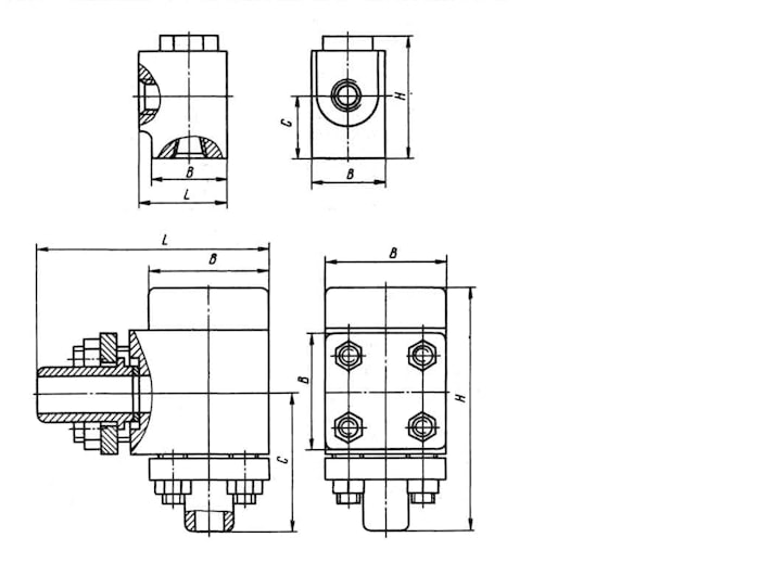 Габаритные и присоединительные размеры клапанов обратных типа Г51-3..