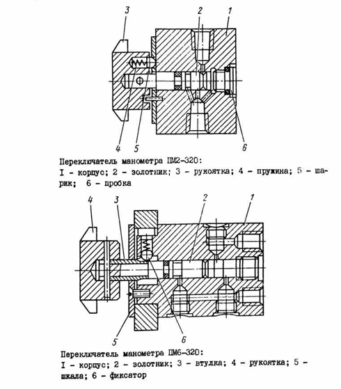 Переключатели манометра типа ПМ2..-320 и ПМ6-320 состоят из следующих узлов (см.рис.2):
