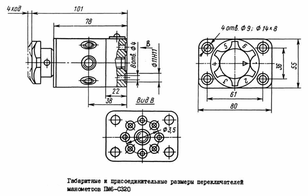 Габаритные и присоединительные размеры переключателей манометра: