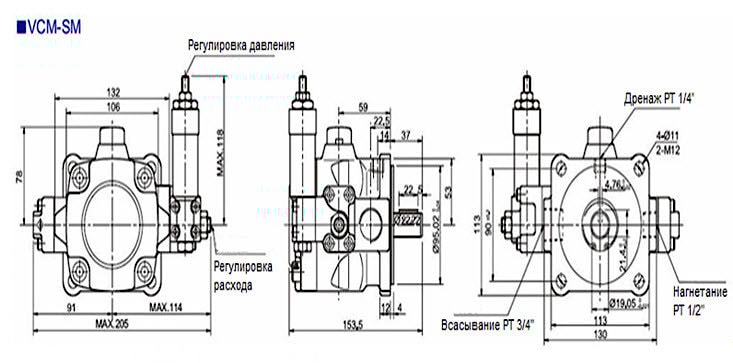 Насосы марки VCM-.. представляют собой пластинчатые регулируемые насосы аналогичные насосам типа НПлР 20/6,3 и НПлР 20/16. Насосы VCM могут быть установлены в гидросистемах различных станков и механизмов, работающих на минеральном масле с вязкостью от 25 до 160 мм2/с (сСт) при температурах -100С до +700С.Насосы VCM-… выгодно отличаются от российских регулируемых насосов типа НПлР высокой эффективностью при минимальных потерях мощности, низким уровнем шума, компактным дизайном, небольшим весом и главное–невысокой ценой.